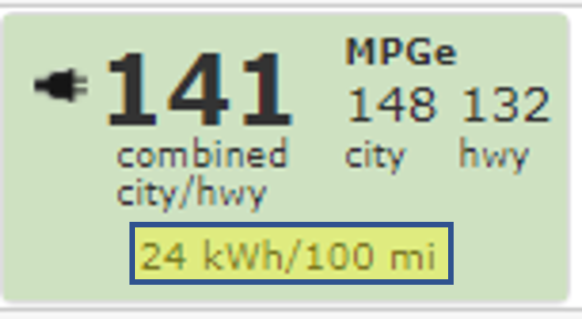 This means this car will consume .24 kWh per mile (24 kWh/100 miles = .24 kWh per Mile)